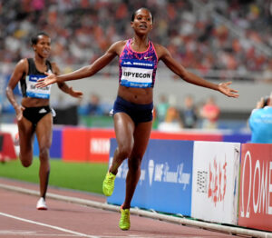 Thompson wasn’t the only woman in world leading form this evening, as Faith Kipyegon became the first woman this year to break four minutes for 1500m as she held off Dawit Seyaum of Ethiopia.